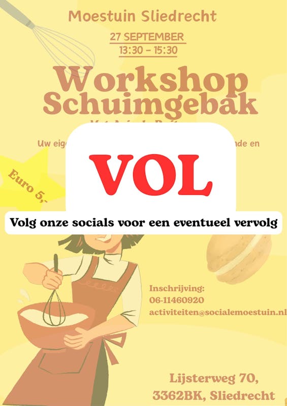 Kom OP ZATERDAG 27 SEPTEMBER, een heerlijke schuimgebak leren maken op de moestuin in Sliedrecht.