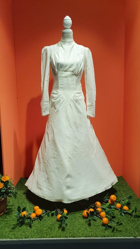 Bij bevrijding ontkom je er niet aan de oorlog. Dat is natuurlijk ook een onderdeel van de expositie: Persoonsbewijzen, voedselbonnen en andere documenten die in de oorlog werden gebruikt, zijn tentoongesteld. Een van de pronkstukken is een trouwjurk die in de oorlog is gemaakt van parachutestof. Een prachtige animatie van Dick van den Berg laat de metamorfose van parachute naar jurk zien.