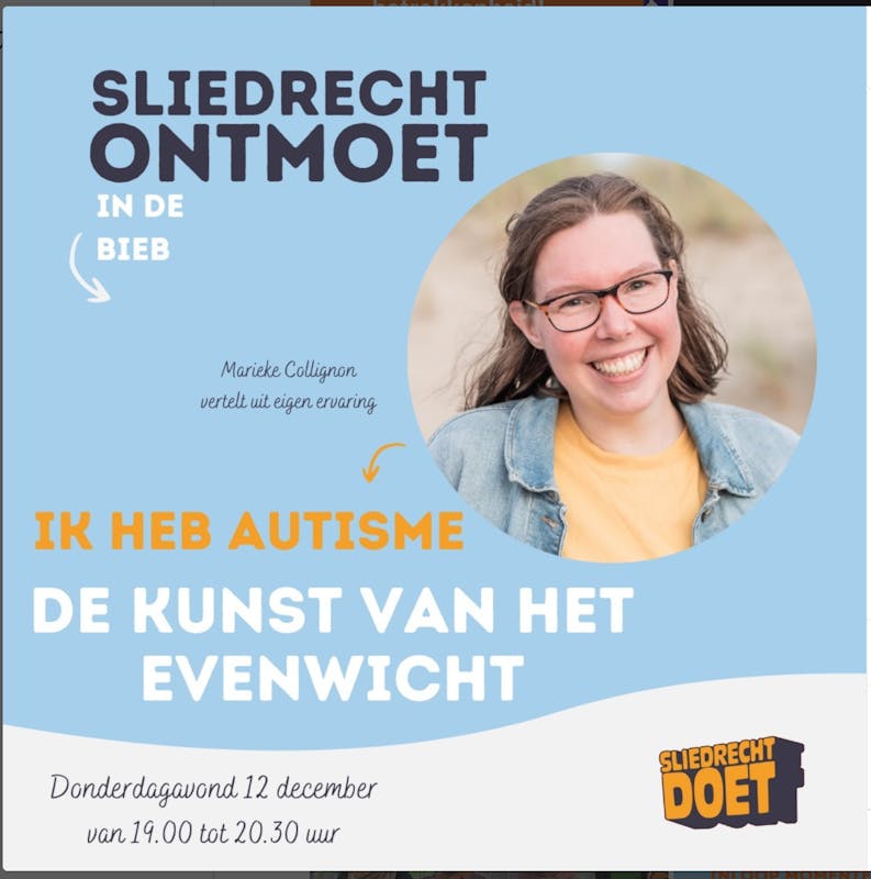 Ervaringsdeskundige Marieke Collignon heeft op donderdag 12 december een presentatie gegeven over de Kunst van het Evenwicht. Zij was te gast in Sliedrecht Ontmoet in de bieb; een wekelijkse inloop voor ontmoeting, meedoen en samen doen tussen 19.00 en 20.30 uur.