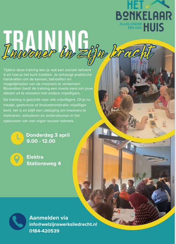 Vrijwilligers van verschillende organisaties kwamen samen in het mooie gebouw van SOJS en ontdekten de kracht van verbinding. Door het Carola de Jong van het Bonkelaarhuis werd een training georganiseerd met de titel 'Inwoner in zijn kracht'. Dit deed zij samen met haar collega Jetien Olivier.