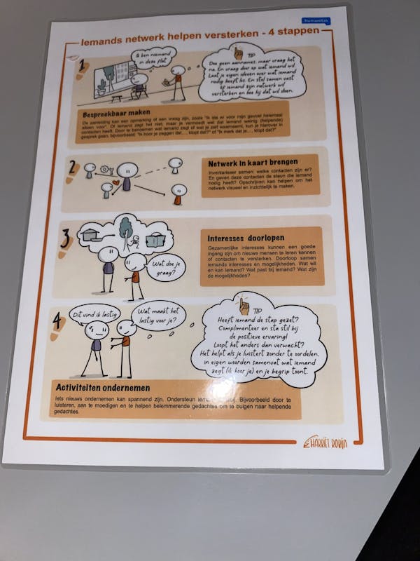 Haal mensen uit hun isolement; er is veel eenzaamheid, maar zet de bewoner in hun kracht, maak hun netwerk zichtbaar en geef hulp bij de ontwikkeling van hun eigen netwerk. Een simpel praatje kan de wereld voor iemand veranderen. Zorg voor verbinding en kijk wat er ontstaat, maar zet altijd de bewoner zelf in hun kracht.